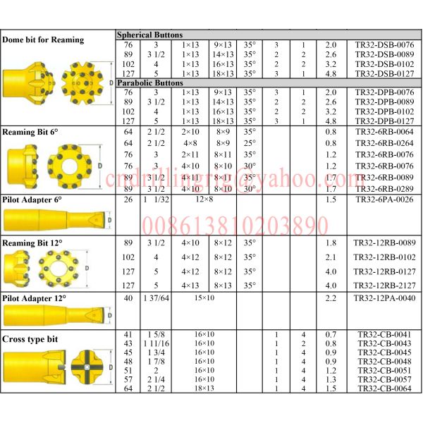Shank : R32,R38,T38,T45,T51,ST58,ST68,GT60